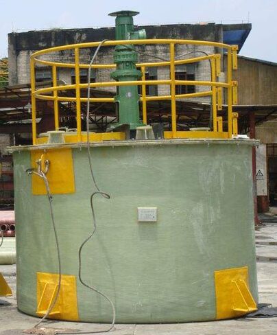 60立方玻璃鋼攪拌罐主要由攪拌罐體及攪拌系統兩大部分組成,罐體采用高強度的玻璃鋼整體纏繞制作,不但解決攪拌時對罐體高強度的要求,也解決了在化工領域對攪拌罐苛刻的防腐要求。 攪拌罐由電機、減速機、玻璃鋼罐體、玻璃鋼蓋、攪拌槳、填料箱等裝置組成。