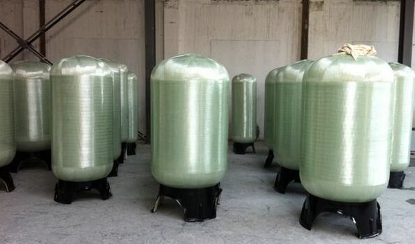 水處理玻璃鋼樹脂罐廣泛運用于化工、環保、食品、制藥、印染等行業中。水處理玻璃鋼罐的的外纏繞層是玻璃纖維,內襯pe/frp, 測試壓力是150psi, 工作壓力是100psi,工作溫度是1-49℃, 抽真空度是5″hg(127mm hg)